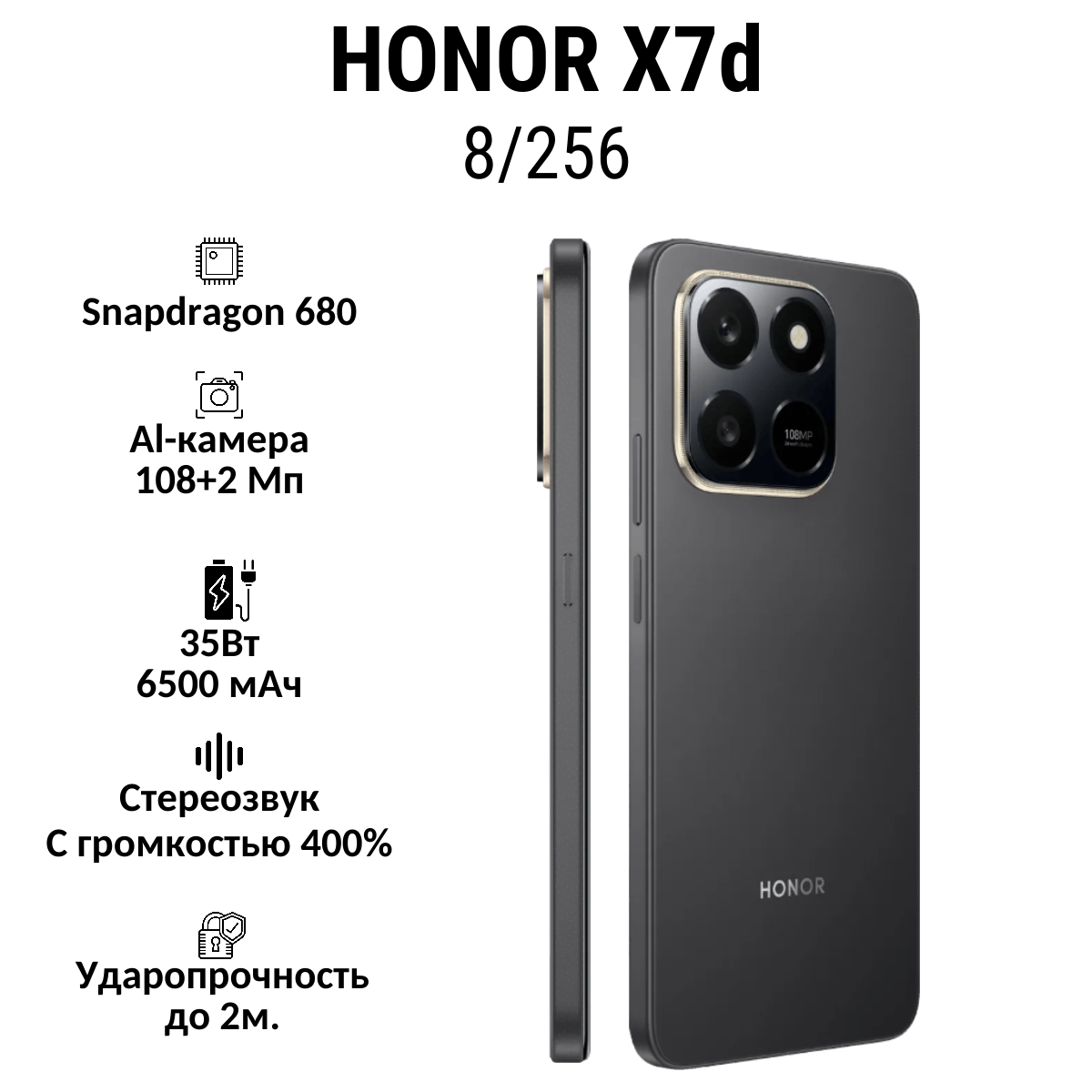 HONOR X7d оснащен процессором Snapdragon 685, что обеспечивает быструю и плавную работу устройства.