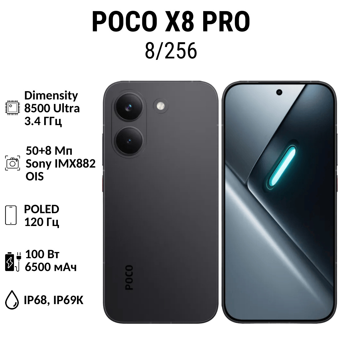 Смартфон POCO X8 Pro ориентирован на высокую производительность и автономность, предлагая обновленный процессор MediaTek Dimensity 8500 Ultra и емкий аккумулятор.